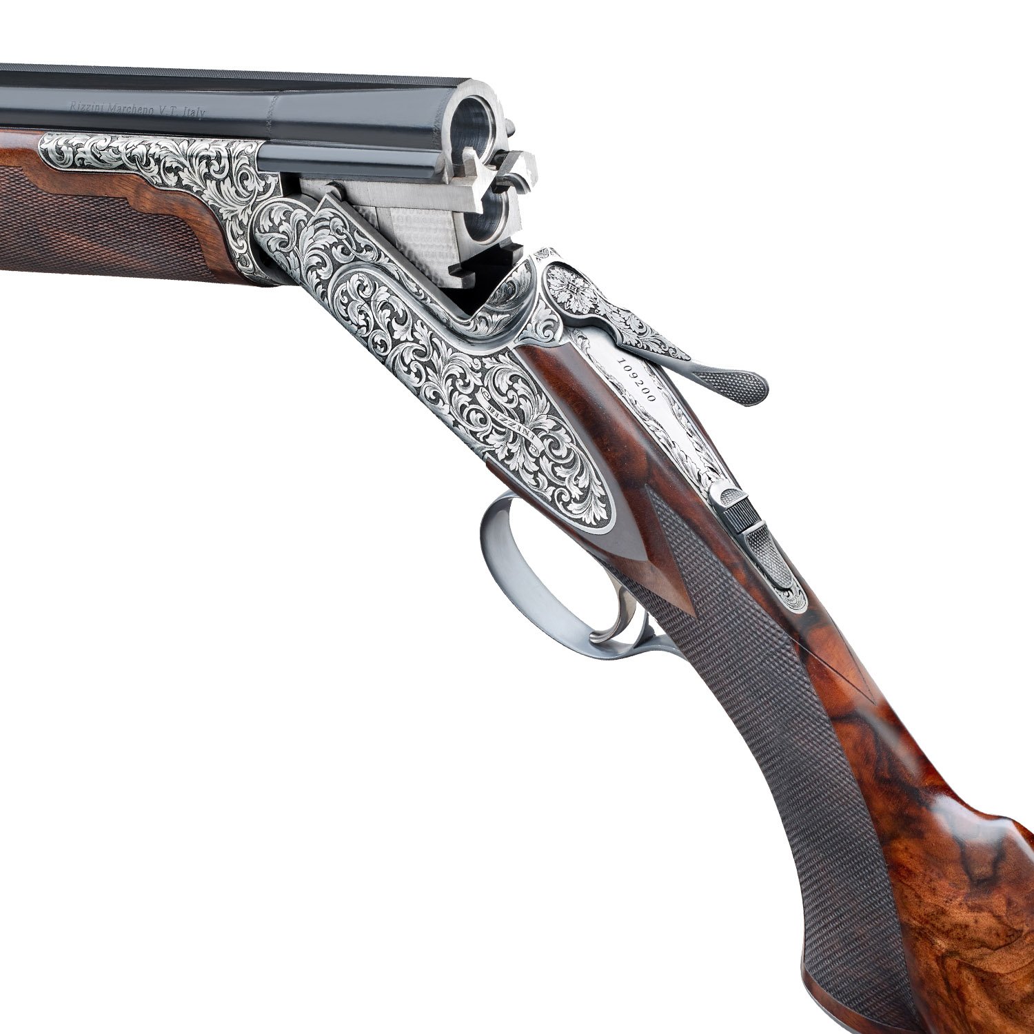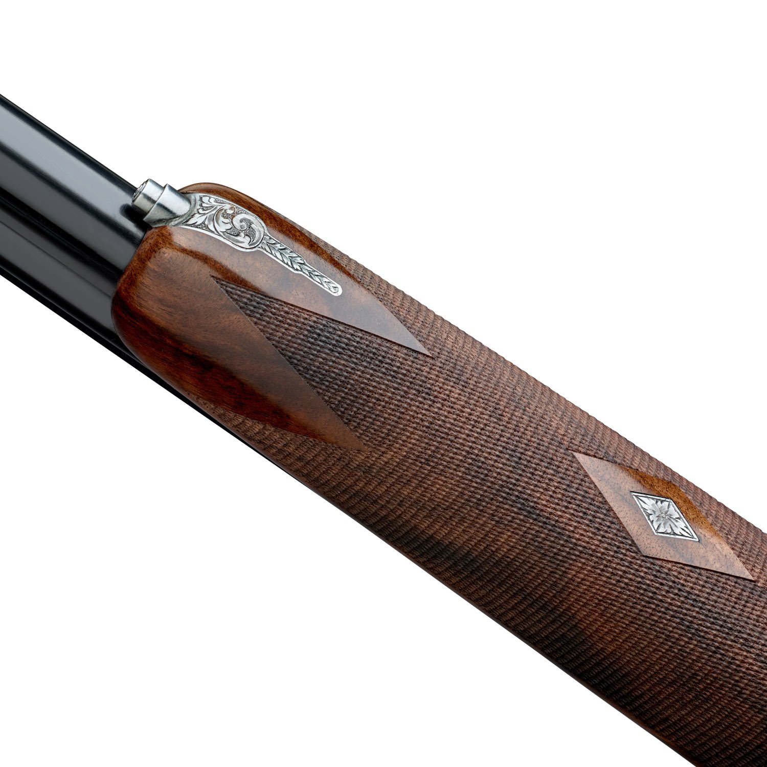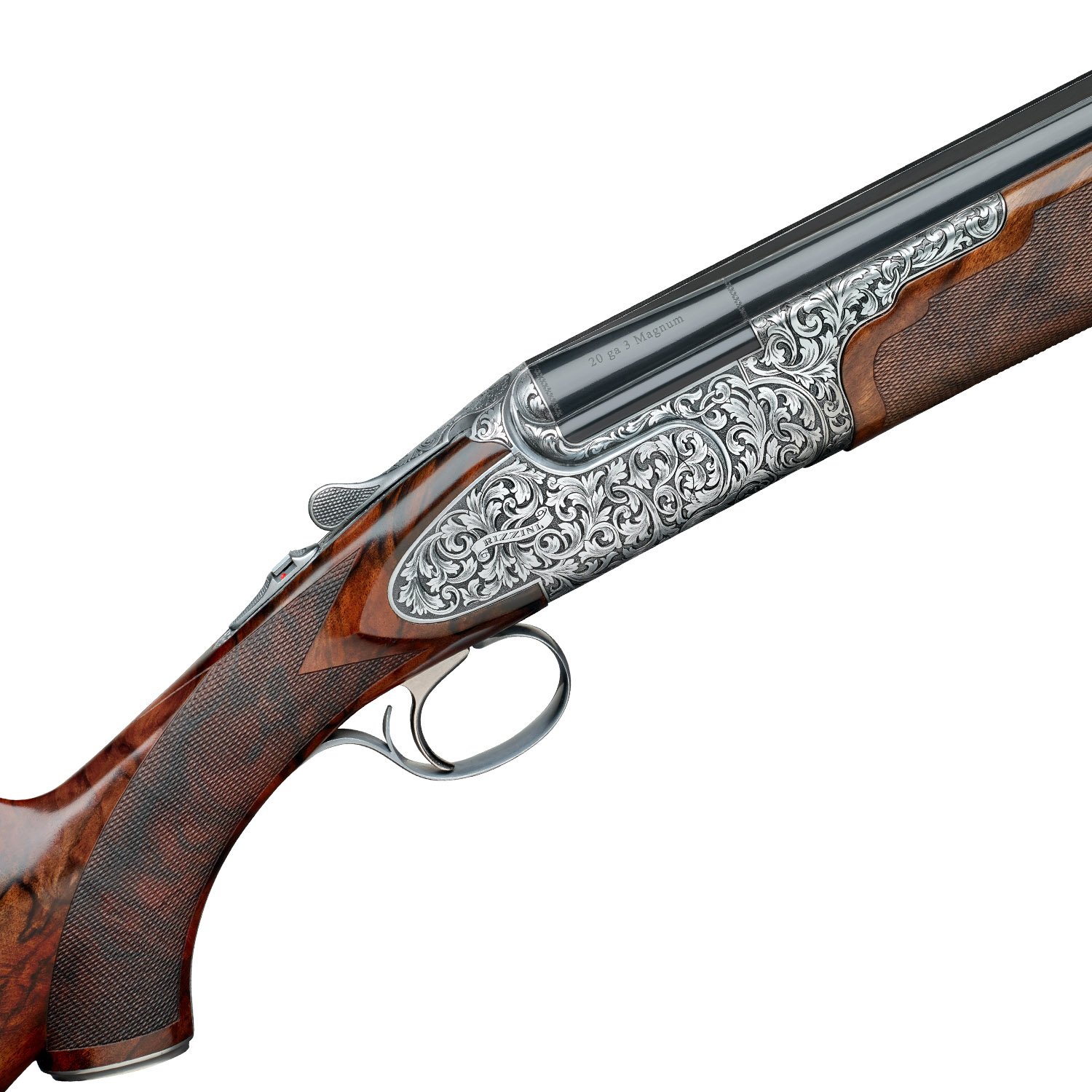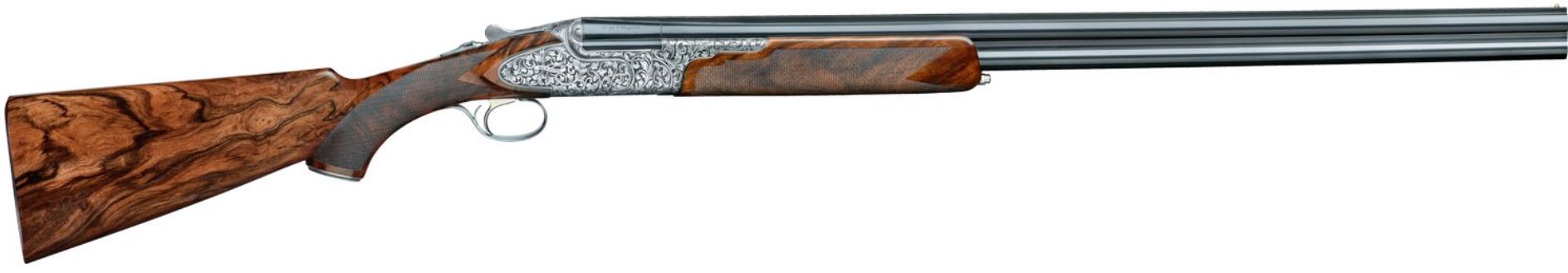 Erhältlich im Kaliber 12 - 16 - 20 - 28 - 410. Elegante runde Basküle mit Seitenplatten und ansprechender Laubgravur. Lauflängen: 67 - 71 - 76cm, Stahlschrotbeschuss.